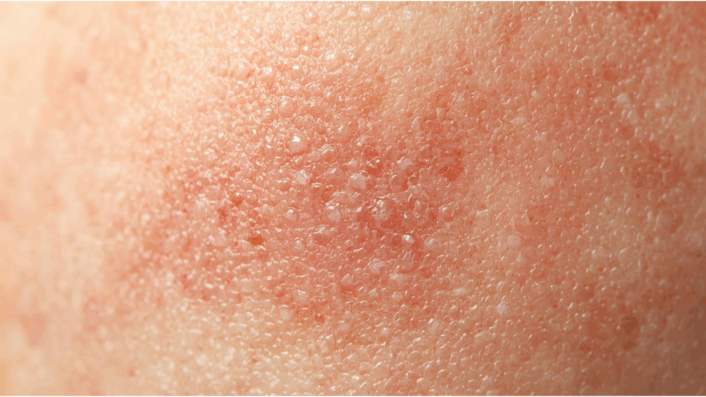 • Characterized by white, pus-filled blisters (pustules) surrounded by red or inflamed skin.